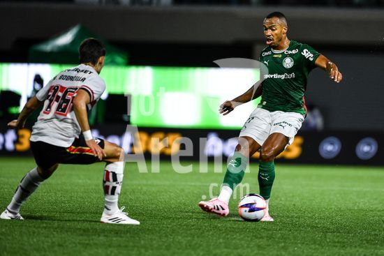 2873174 Arboleda e Vitor Roque durante partida entre Palmeiras e São Paulo válida pela 5ª rodada do Campeonato Paulista 2026 realizada na Arena Barueri neste sábado (24)