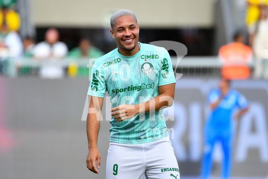 2873342 Vitor Roque do Palmeiras durante aquecimento para a partida entre Palmeiras x São Paulo FC, válida pela quinta rodada do Campeonato Paulista de Futebol 2026, neste sábado (24), na Arena Crefisa Barueri, em Barueri, SP.