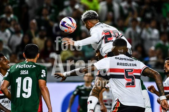 2873327 D. Bobadilla do São Paulo e Sosa do Palmeiras disputam a bola durante partida entre Palmeiras x São Paulo FC, válida pela quinta rodada do Campeonato Paulista de Futebol 2026, neste sábado (24), na Arena Crefisa Barueri, em Barueri, SP.