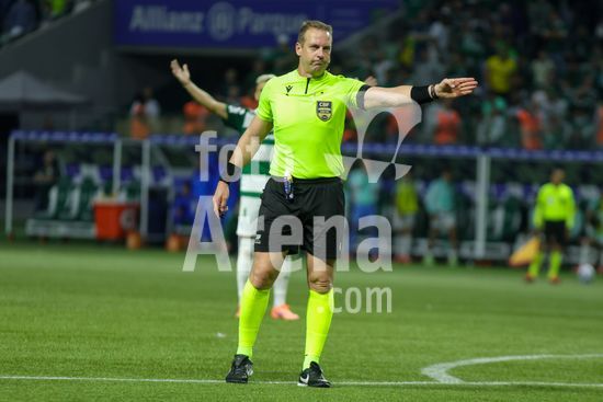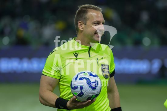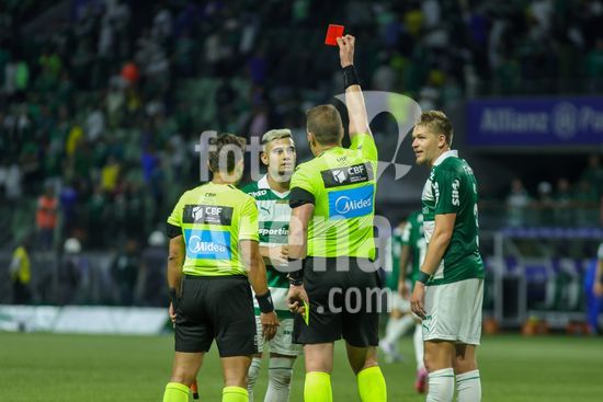 2845306 Árbitro Lucas Paulo Torezin conversa com jogadores durante a partida entre Palmeiras e Vitória, válida pela 37ª rodada antecipada do Brasileirão e realizada na noite desta quarta-feira (19) no Allianz Parque, em São Paulo, SP.