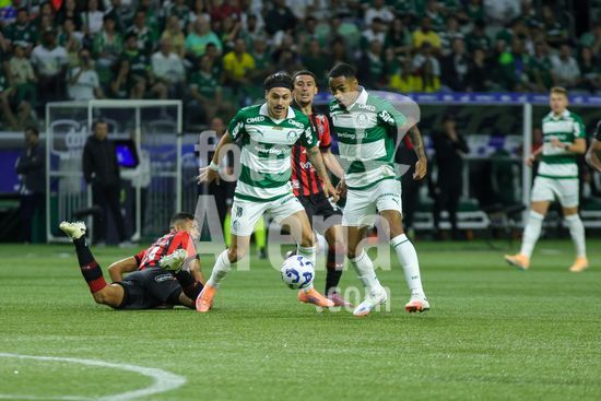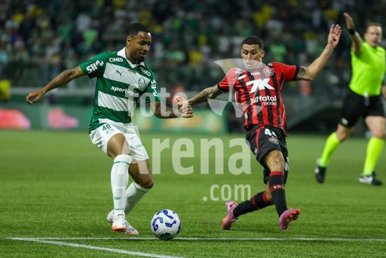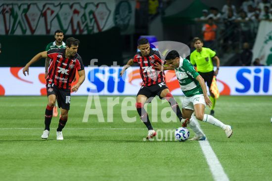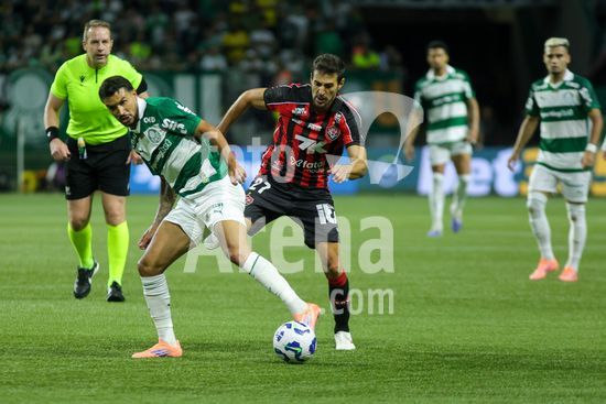 2845298 Thiago Couto e Flaco Lopez durante partida entre Palmeiras e Vitória válida pela 37ª rodada do Campeonato Brasileiro 2025 realizada antecipadamente no Allianz Parque na noite desta quarta (19).