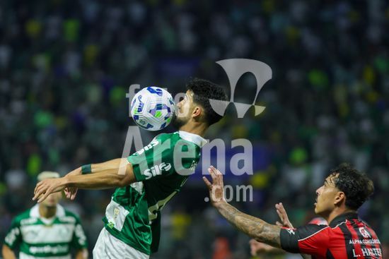2845292 Lance aéreo durante a partida entre Palmeiras e Vitória, válida pela 37ª rodada antecipada do Brasileirão e realizada na noite desta quarta-feira (19) no Allianz Parque, em São Paulo, SP.