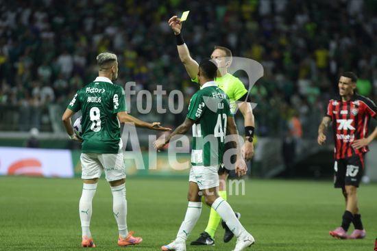 2845385 Andreas Pereira recebe cartão amarelo durante partida entre Palmeiras e Vitória válida pela 37ª rodada do Campeonato Brasileiro 2025 realizada antecipadamente no Allianz Parque na noite desta quarta (19).