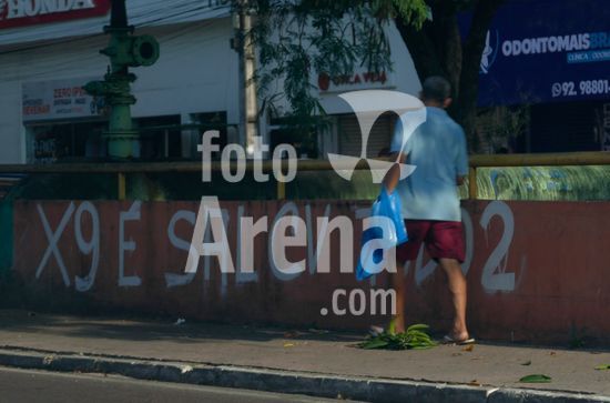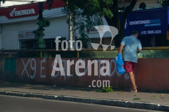 2834270 Pichações do "CV" (sigla da facção do Comando Vermelho), em paredões no bairro da Compensa, zona oeste, e em prédios históricos no centro de Manaus (AM), na manhã deste domingo (2).