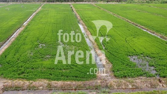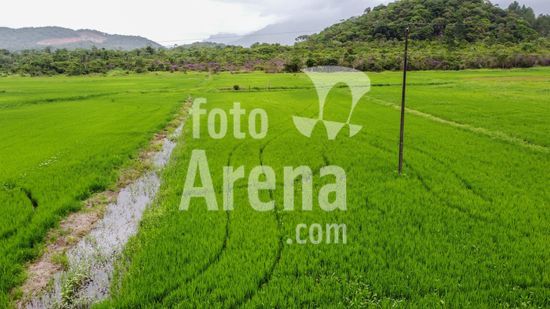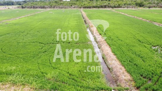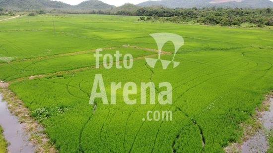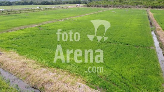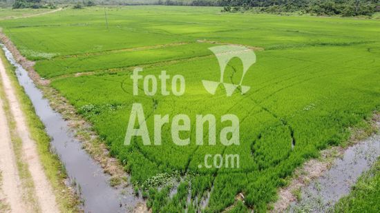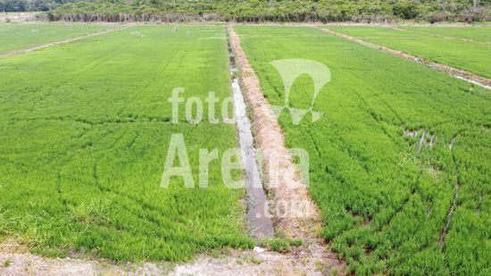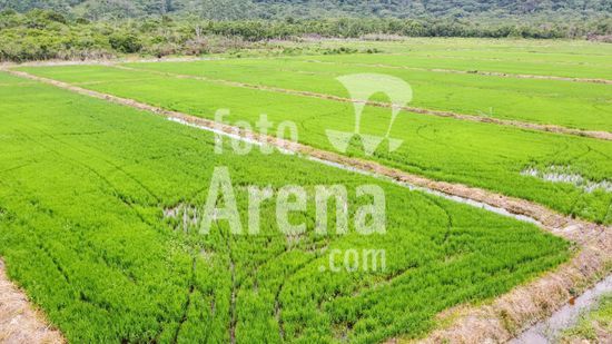 2876841 Plantação de arroz em propriedade rural em Garuva, na Região Nordeste de Santa Catarina.Imagem capturada por drone. Informações das coordenadas: 26° 1' 58,88" S, 48° 46' 38,25" W. Latitude 26,1.9814S. Longitude 48,46.6375W