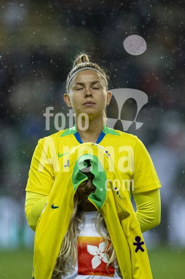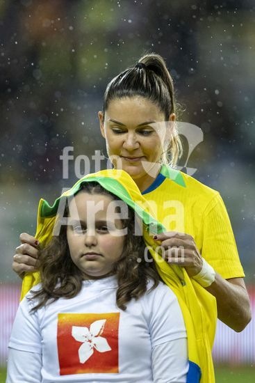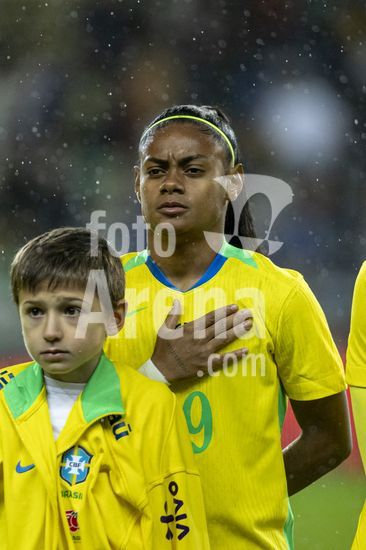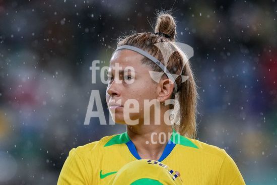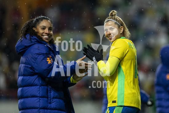 2852374 AVEIRO, PORTUGAL - 2 DE DEZEMBRO: Fe Palermo do Brasil se alinha para o hino antes do amistoso internacional feminino entre Portugal e Brasil no Estadio Municipal de Aveiro em 2 de dezembro de 2025 em Aveiro, Portugal. (Pedro Loureiro/Sports Press Phot / SPP)