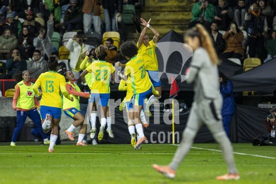 2852365 AVEIRO, PORTUGAL - 2 DE DEZEMBRO: Ludmila do Brasil comemora apos marcar o segundo gol da equipe durante um amistoso internacional feminino entre Portugal e Brasil no Estadio Municipal de Aveiro em 2 de dezembro de 2025 em Aveiro, Portugal. (Pedro Loureiro/Sports Press Phot / SPP)
