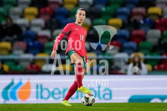 2852368 AVEIRO, PORTUGAL - 2 DE DEZEMBRO: Jessica Silva de Portugal corre com a bola durante um amistoso internacional feminino entre Portugal e Brasil no Estadio Municipal de Aveiro em 2 de dezembro de 2025 em Aveiro, Portugal. (Pedro Loureiro/Sports Press Phot / SPP)