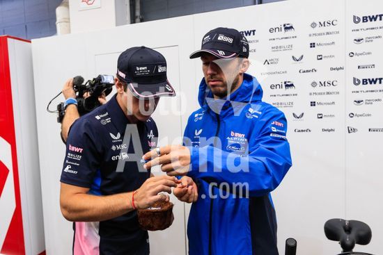 2836757 Quinta-feira (06) de preparativos para o Grande Prêmio de Fórmula 1 em São Paulo, que acontecerá neste final de semana no autódromo de Interlagos, zona sul da capital paulista. Na foto os pilotos da BWT Alpine F1 Team, Franco Colapinto (20) e Pierre Gasly (10).