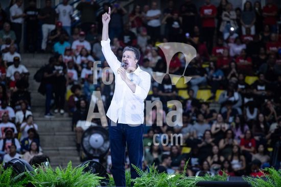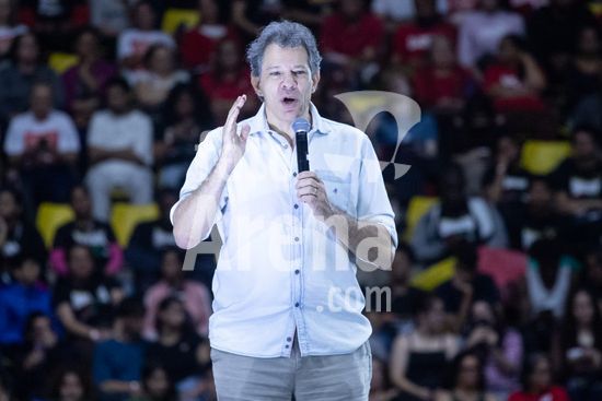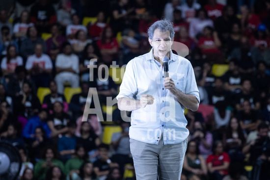 2826366 Presidente Luiz Inácio Lula da Silva participa de aulão da Rede Nacional de Cursinhos Populares (CPOP), realizada na manhã deste sábado (18) no Ginásio Poliesportivo de São Bernardo em São Bernardo do Campo, SP. Na foto, Fernando Haddad, Ministro da Fazenda.