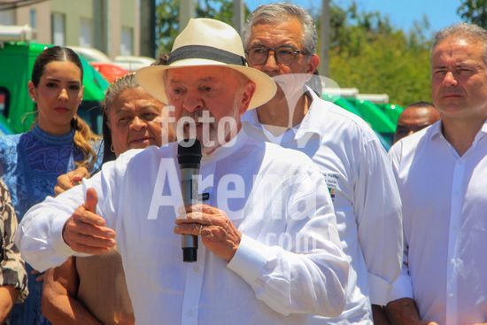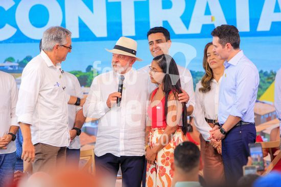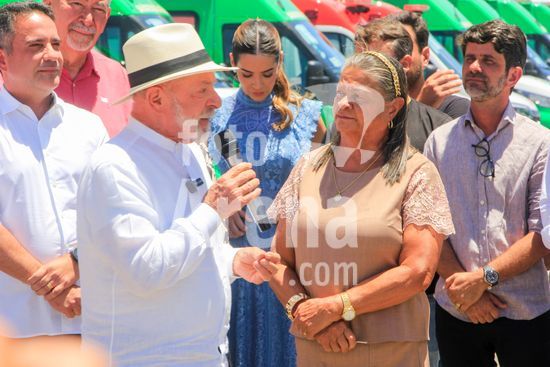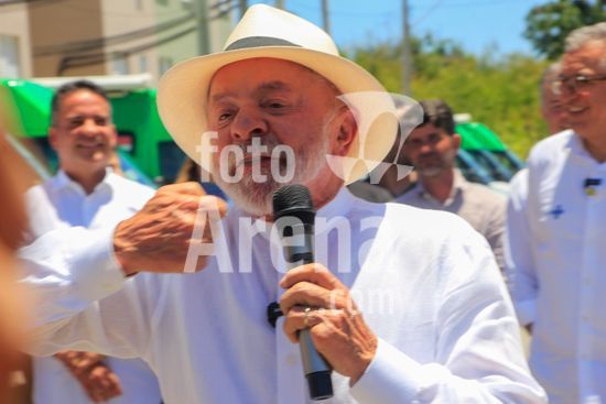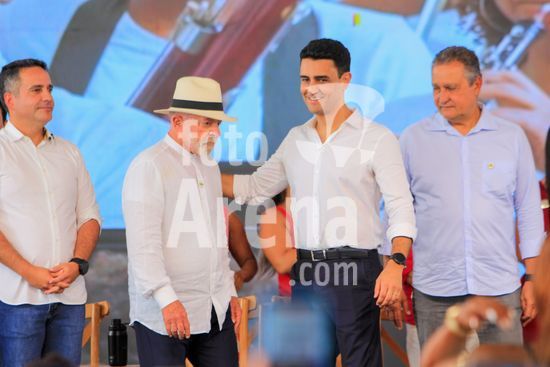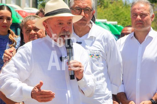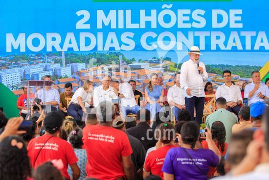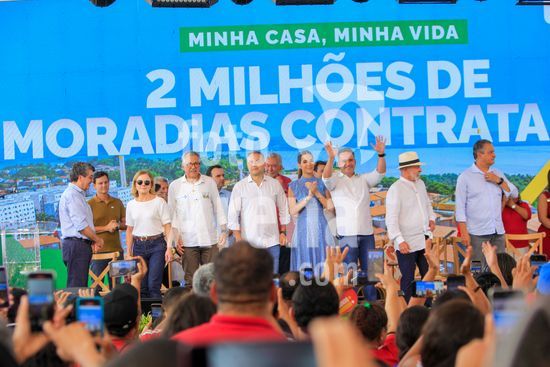 O presidente Lula, acompanhado do ministro das Cidades, Jader Filho, e do presidente da Caixa Econômica Federal, Carlos Vieira, entre outras autoridades, participa de cerimônia de entrega de apartamentos dos residenciais Pedro Teixeira I e II, Diana Simone e Parque da Lagoa, que fazem parte do programa habitacional Minha Casa Minha Vida. Além da entrega das unidades de habitação, foram entregues 17 unidades odontológicas para o estado de Alagoas e 7 ambulâncias do SAMU para atender a cidade de Maceió, capital alagoana.