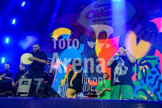 2885440 Grupo de pagode, Menos é Mais, no primeiro dia do Carnaval na Cidade realizado no Centro Esportivo Tietê, em São Paulo.