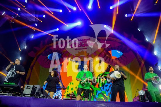 2885432 Grupo de pagode, Menos é Mais, no primeiro dia do Carnaval na Cidade realizado no Centro Esportivo Tietê, em São Paulo.