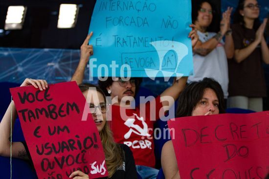2835551 Manifestantes do Flamas (Fórum da Luta Antimanicomial de Sorocaba) protestaram na manhã desta terça-feira (4), na Câmara dos Vereadores de Sorocaba, contra o decreto do prefeito Rodrigo Manga, que prevê a internação involuntária de dependentes químicos.