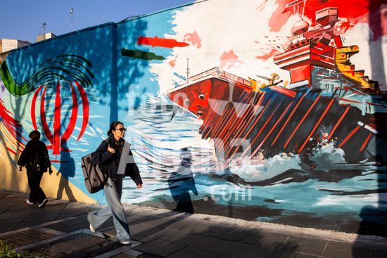 ny160426172313 A woman passes a mural of Iranian missiles striking a U.S. Navy ship in Tehran, on Thursday, April 16, 2026. President Donald Trump told reporters at the White House that the next in-person negotiations with Iran might occur this weekend. (Arash Khamooshi/The New York Times/Fotoarena)