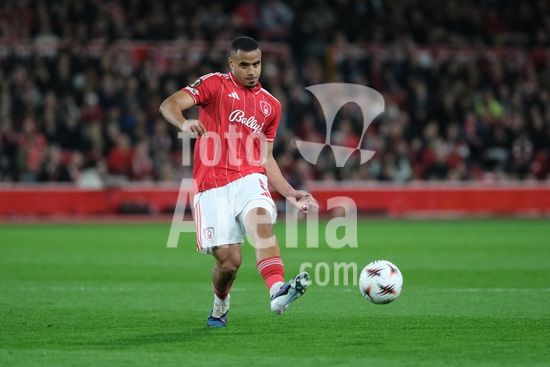 2926242 NOTTINGHAM, INGLATERRA - 16 DE ABRIL: Murillo, do Nottingham Forest, passa a bola para a frente durante a partida de futebol das quartas de final da Liga Europa da UEFA entre Nottingham Forest e FC Porto, no City Ground, em 16 de abril de 2026, em Nottingham, Inglaterra. (Paul Bonser / Sports Press Photo / SPP)