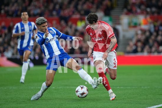 2926243 NOTTINGHAM, INGLATERRA - 16 DE ABRIL: Neco Williams, do Nottingham Forest, e William Gomes, do FC Porto, em acao durante a partida de futebol das quartas de final da Liga Europa da UEFA entre Nottingham Forest e FC Porto, no City Ground, em 16 de abril de 2026, em Nottingham, Inglaterra. (Paul Bonser / Sports Press Photo / SPP)