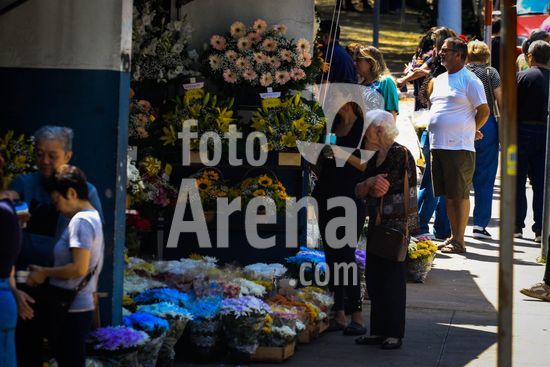 2833763 Pessoas fazem limpeza e depositam flores em túmulos de familiares neste sábado (01), véspera do Dia de Finados no Cemitério Bela Vista em Osasco na Grande São Paulo. Na foto, comércio de flores em frente ao cemitério Bela Vista.