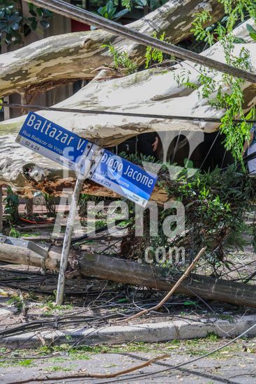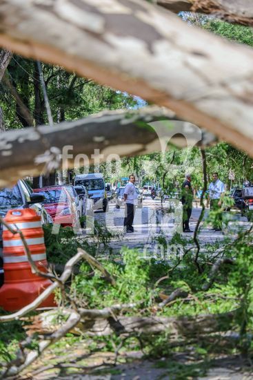 Durante forte ventania na tarde de hoje em São Paulo/SP, Quarta - feira, 10/12/25, árvore de grande porte cai, atravessando a rua Diogo Jacome, no bairro Vila Nova Conceicção, próximo ao Parque Ibirapuera. e impossibilitando o acesso e trafego na região. Postes foram quebrados, rompendo o fornecimento de erngaia na região. Não houve feridos.