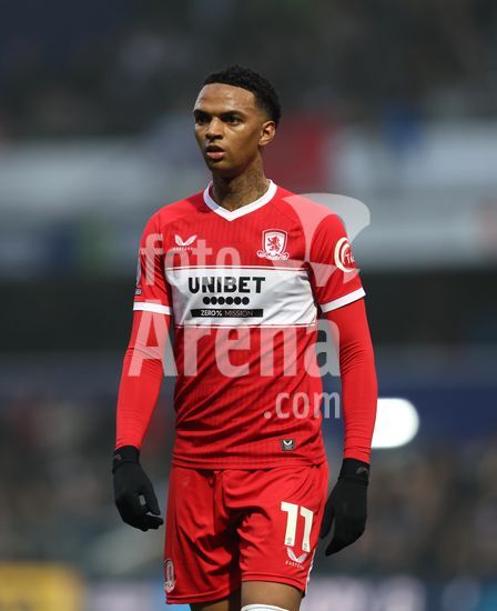 2901531 LONDRES, INGLATERRA, 8 DE MARCO: Morgan Whittaker, do Middlesbrough, durante a partida entre Queens Park Rangers FC e Middlesbrough FC, valida pelo Sky Bet Championship, no Estadio Loftus Road, em Londres, Inglaterra, no dia 8 de marco. (Foto de Daniel Weir) (Daniel Weir/Sports Press Photo / SPP)