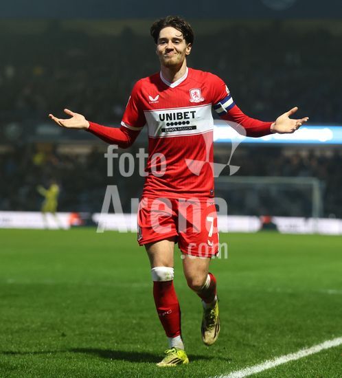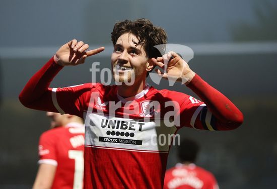 2901533 LONDRES, INGLATERRA, 8 DE MARCO: GOLO 3-0, Hayden Hackney, do Middlesbrough, comemora apos marcar o gol que colocou o Middlesbrough em vantagem de 3-0 durante a partida entre Queens Park Rangers FC e Middlesbrough FC, valida pelo Sky Bet Championship, no Estadio Loftus Road, em Londres, Inglaterra, em 8 de marco. (Foto de Daniel Weir) (Daniel Weir/Sports Press Photo / SPP)