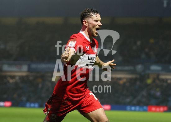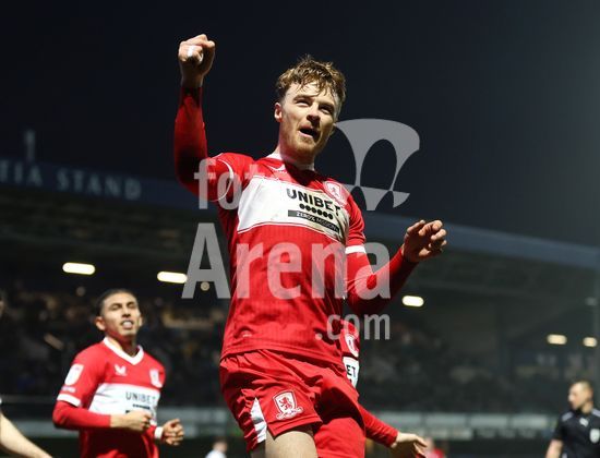 2901565 LONDRES, INGLATERRA, 8 DE MARCO: GOL 4-0, Tommy Conway, do Middlesbrough, comemora apos marcar um gol de penalti, colocando o Middlesbrough em vantagem de 4-0 durante a partida entre Queens Park Rangers FC e Middlesbrough FC, valida pelo Sky Bet Championship, no Estadio Loftus Road, em Londres, Inglaterra, em 8 de marco. (Foto de Daniel Weir) (Daniel Weir/Sports Press Photo / SPP)