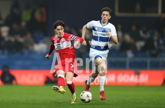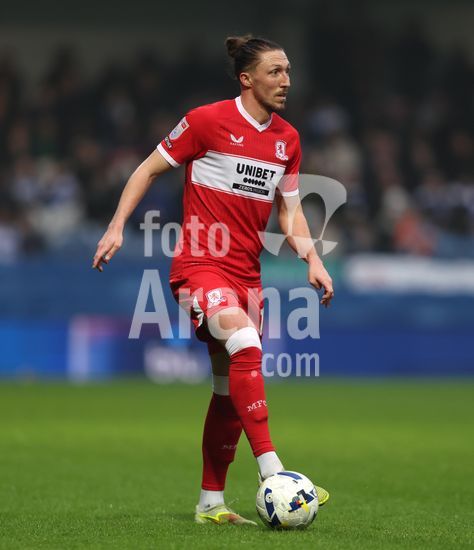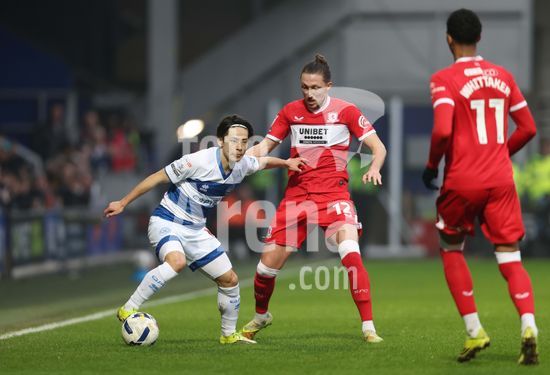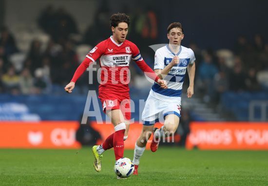 2901567 LONDRES, INGLATERRA, 8 DE MARCO: Hayden Hackney, do Middlesbrough, com a bola durante a partida entre Queens Park Rangers FC e Middlesbrough FC, valida pelo Sky Bet Championship, no Estadio Loftus Road, em Londres, Inglaterra, em 8 de marco. (Foto de Daniel Weir) (Daniel Weir/Sports Press Photo / SPP)