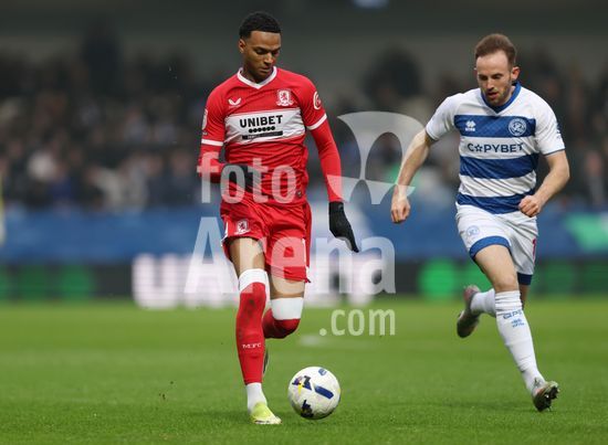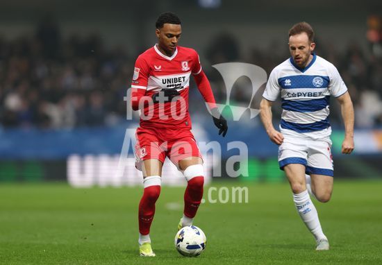 2901569 LONDRES, INGLATERRA, 8 DE MARCO: Morgan Whittaker, do Middlesbrough, com a bola durante a partida entre Queens Park Rangers FC e Middlesbrough FC, valida pelo Sky Bet Championship, no Estadio Loftus Road, em Londres, Inglaterra, em 8 de marco. (Foto de Daniel Weir) (Daniel Weir/Sports Press Photo / SPP)