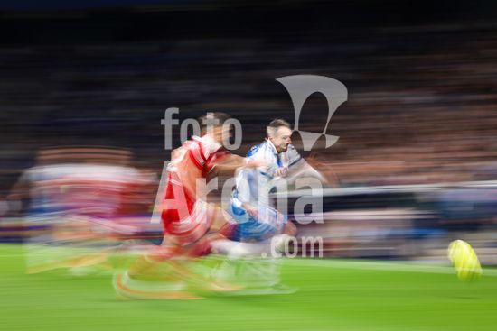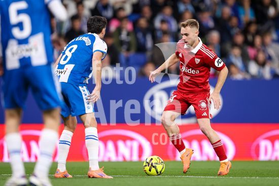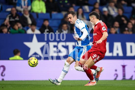 2847800 Andrés Castrín e Roberto Fernández estão disputando a bola durante RCD Espanyol vs Sevilla realizada no RCDE Stadium em Barcelona, CA.