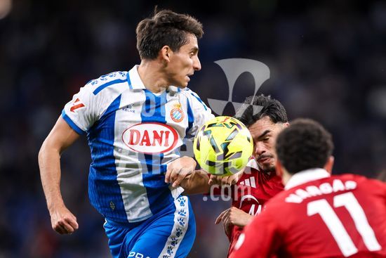2847747 Kike García e Andrés Castrínestão disputando a bola durante RCD Espanyol vs Sevilla realizada no RCDE Stadium em Barcelona, CA.