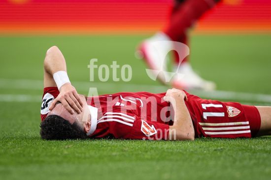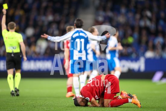 2847727 Rubén Vargas ferido durante RCD Espanyol vs Sevilla realizada no RCDE Stadium em Barcelona, CA.