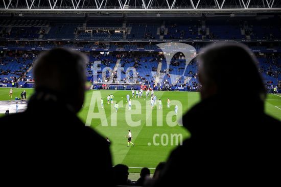2847728 Público assistindo ao aquecimento durante RCD Espanyol vs Sevilla realizada no RCDE Stadium em Barcelona, CA.