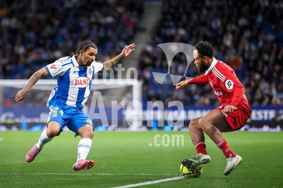 2847783 Akor Adams e Leandro Cabreraestão disputando a bola durante RCD Espanyol vs Sevilla realizada no RCDE Stadium em Barcelona, CA.