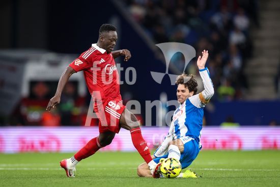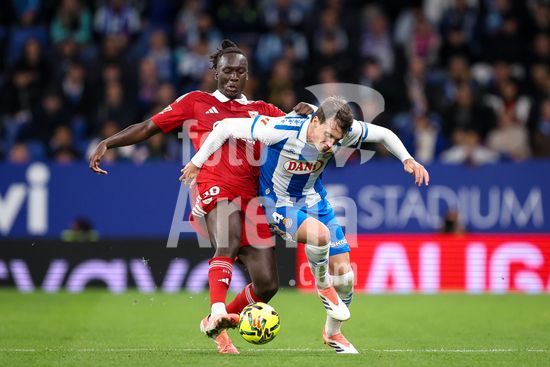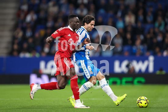 2847745 Batista Mendy e Urko González estão disputando a bola durante RCD Espanyol vs Sevilla realizada no RCDE Stadium em Barcelona, CA.