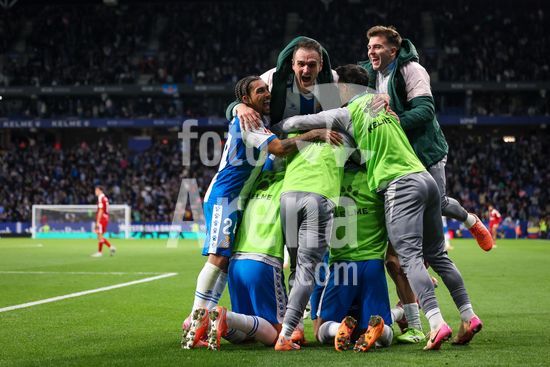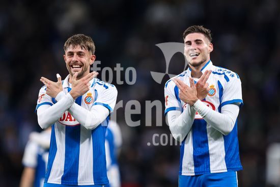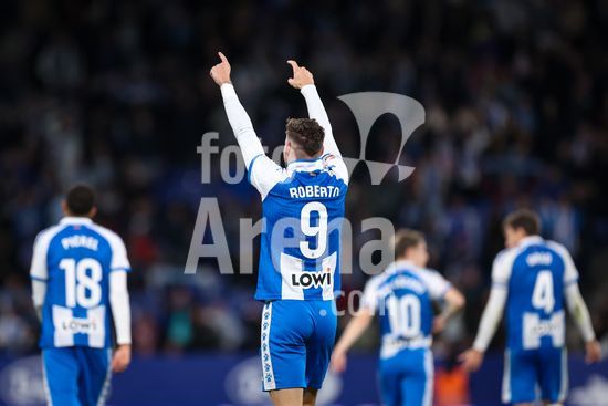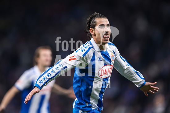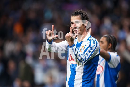 2847791 Roberto Fernández comemora o segundo gol durante RCD Espanyol vs Sevilla realizada no RCDE Stadium em Barcelona, CA.