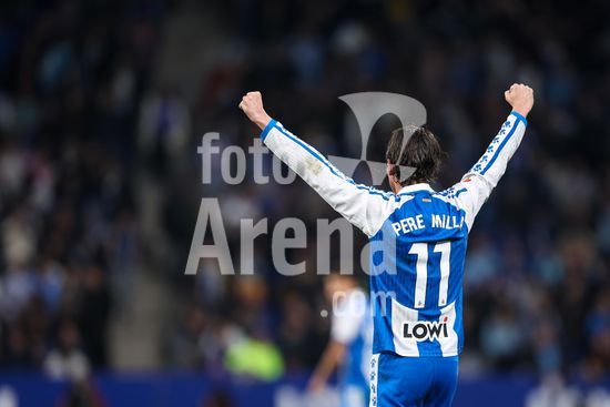 2847752 Pere Milla comemora o primeiro gol durante RCD Espanyol vs Sevilla realizada no RCDE Stadium em Barcelona, CA.