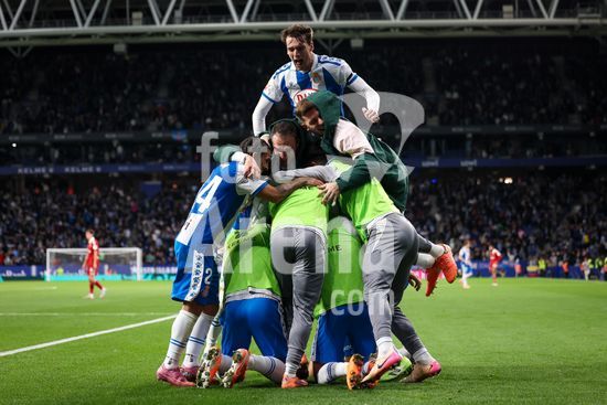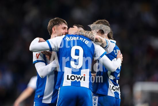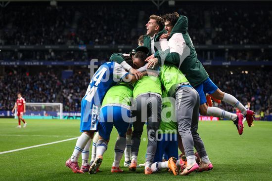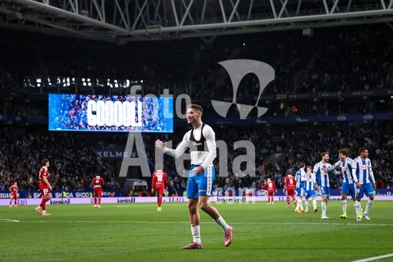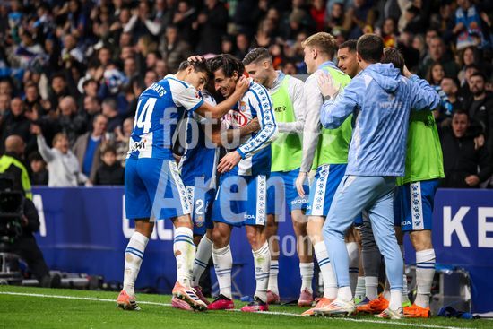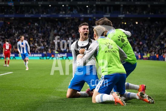 2847785 Roberto Fernández comemora o segundo gol durante RCD Espanyol vs Sevilla realizada no RCDE Stadium em Barcelona, CA.