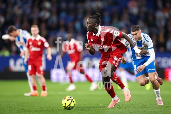 2847761 Chidera Ejuke em ação durante RCD Espanyol vs Sevilla realizada no RCDE Stadium em Barcelona, CA.