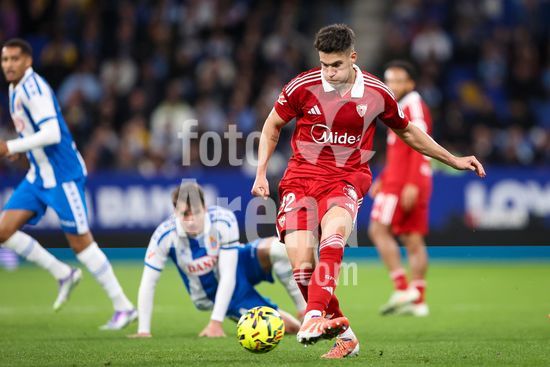 2847723 Gabriel Suazo em ação durante RCD Espanyol vs Sevilla realizada no RCDE Stadium em Barcelona, CA.