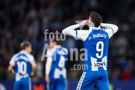 2847787 Roberto Fernández comemora o segundo gol durante RCD Espanyol vs Sevilla realizada no RCDE Stadium em Barcelona, CA.
