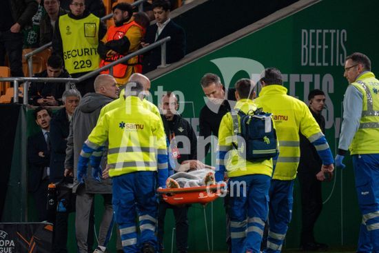 2876182 Lesao de Shaqueel van Persie (N49) durante a partida da Liga Europa da UEFA 25/26 entre Real Betis e Feyenoord no Estadio La Cartuja em Sevilha, Espanha. (Andres Lopez Sheridan / SPP)
