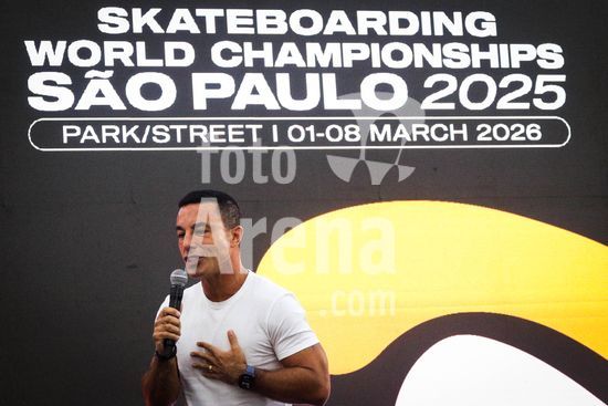 O prefeito da cidade de São Paulo, Ricardo Nunes concede entrevista coletiva nesta segunda-feira (02) no Hall da prefeitura, sobre mundial de Skate em São Paulo (STU) nas modelidades Street e Park. Participaram do evento, o CEO da STU Skateboard, Diogo Castelão, o secretário de Esportes do município de São Paulo, Rogério Lins, a skatista e Letícia Bufoni e o Presidente do Word Skate, Sabatino Aracu.