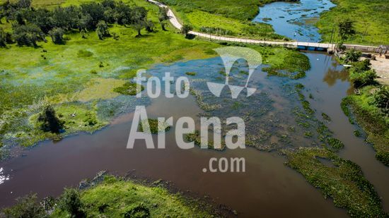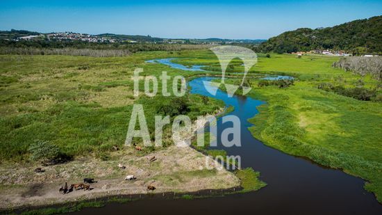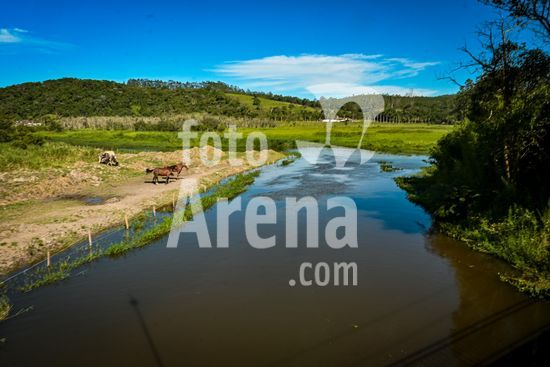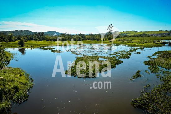 Trecho rural do rio Tiete no município de Biritiba Mirim. O rio Tietê ainda preserva características de seu curso original. Longe dos trechos mais impactados, as águas seguem entre áreas de mata e uso rural, evidenciando a importância da proteção das nascentes e dos trechos superiores para o equilíbrio ambiental da bacia hidrográfica. Os trechos de cabeceira, como o localizado em Biritiba Mirim, exercem papel fundamental na manutenção do regime hídrico, na recarga de aquíferos e na diluição de poluentes ao longo da bacia. Biritiba Mirim, SP.