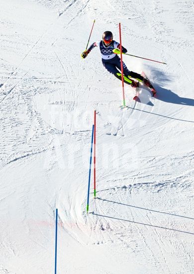 ny180226104411 Mikaela Shiffrin, of the United Sates, during the first run of the women's slalom competition at the 2026 Milan Cortina Winter Olympics in Cortina, Italy, Feb. 18, 2026. (James Hill/The New York Times/Fotoarena)