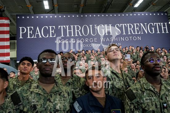 ny281025093212 Military personnel on the USS George Washington listen to President Donald Trump in Yokosuka, Japan, on Tuesday, Oct. 28, 2025. (Haiyun Jiang/The New York Times/Fotoarena)