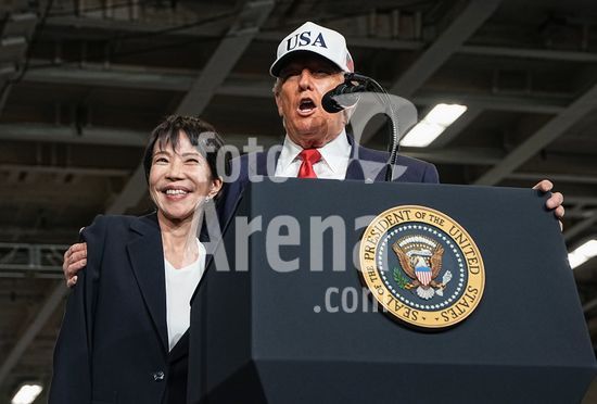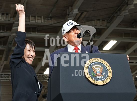 ny281025093913 President Donald Trump and Japan's Prime Minister Sanae Takaichi greet troops on the USS George Washington in Yokosuka, Japan, on Tuesday, Oct. 28, 2025. (Haiyun Jiang/The New York Times/Fotoarena)