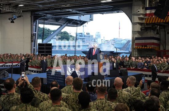 ny281025094914 President Donald Trump addresses military personnel on the USS George Washington in Yokosuka, Japan, on Tuesday, Oct. 28, 2025. (Haiyun Jiang/The New York Times/Fotoarena)