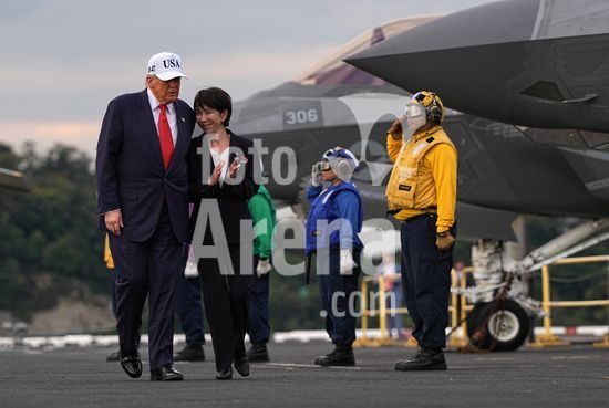 ny281025102013 President Donald Trump and Japanese Prime Minister Sanae Takaichi are greeted by U.S. navy personnel aboard the USS George Washington in Yokosuka, south of Tokyo, Tuesday, Oct. 28, 2025. (Haiyun Jiang/The New York Times/Fotoarena)
