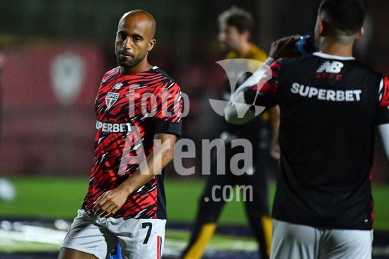 2903785 Lucas do São Paulo durante aquecimento para a partida entre São Paulo FC x Chapecoense, válida pela quinta rodada do Campeonato Brasileiro de Futebol 2026, nesta quinta feira (12), no estádio do Canindé, SP.