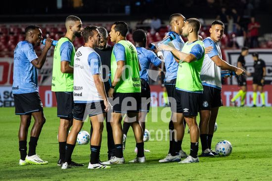 2882417 Aquecimento do Grêmio para a partida entre São Paulo e Grêmio, válida pela 3ª rodada do Brasileirão, realizada na noite desta quarta-feira (11) no MorumBIS em São Paulo, SP.